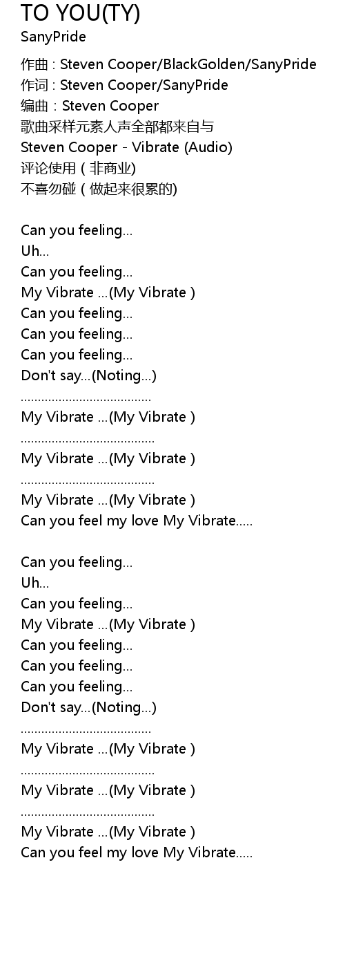 | 作词 : Steven Cooper/SanyPride | |