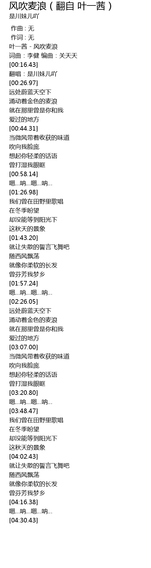 | [00:00.31] | 叶一茜 - 风吹麦浪 |