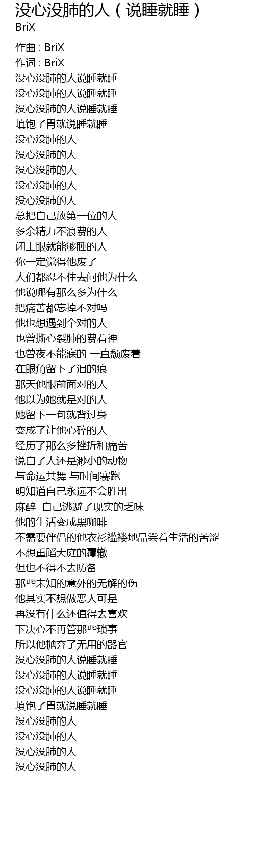 | méi xīn méi fèi de rén shuō shuì jiù shuì | |