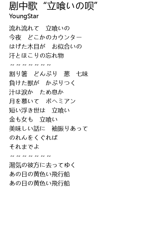 | [02:22.015] | 湯気の彼方に去ってゆく |