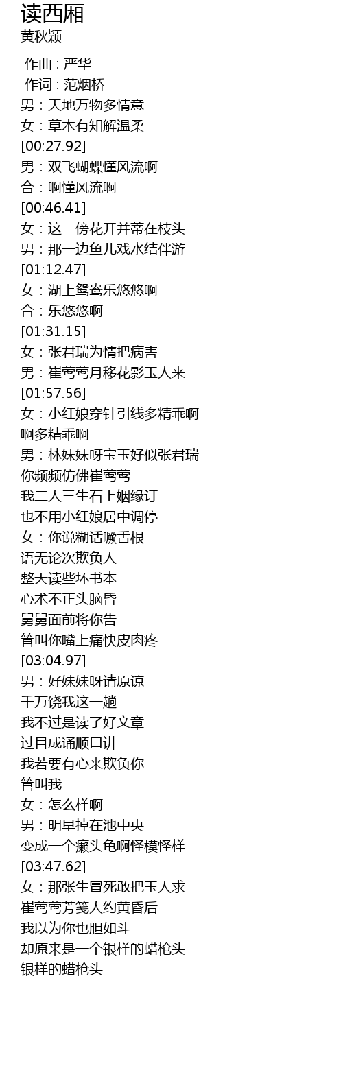 | [02:15.29] | 男:林妹妹呀宝玉好似张君瑞 |