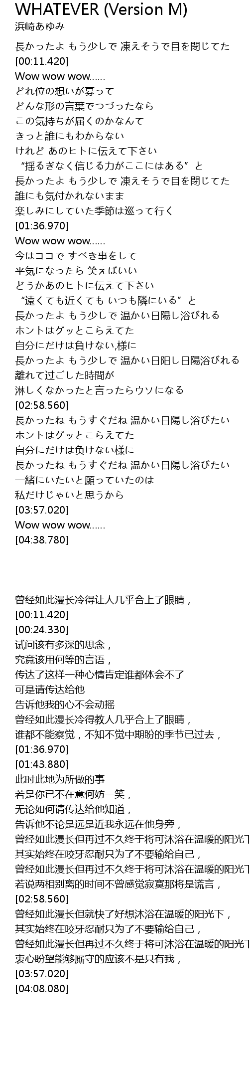 | [04:08.080] | Wow wow wow…… |