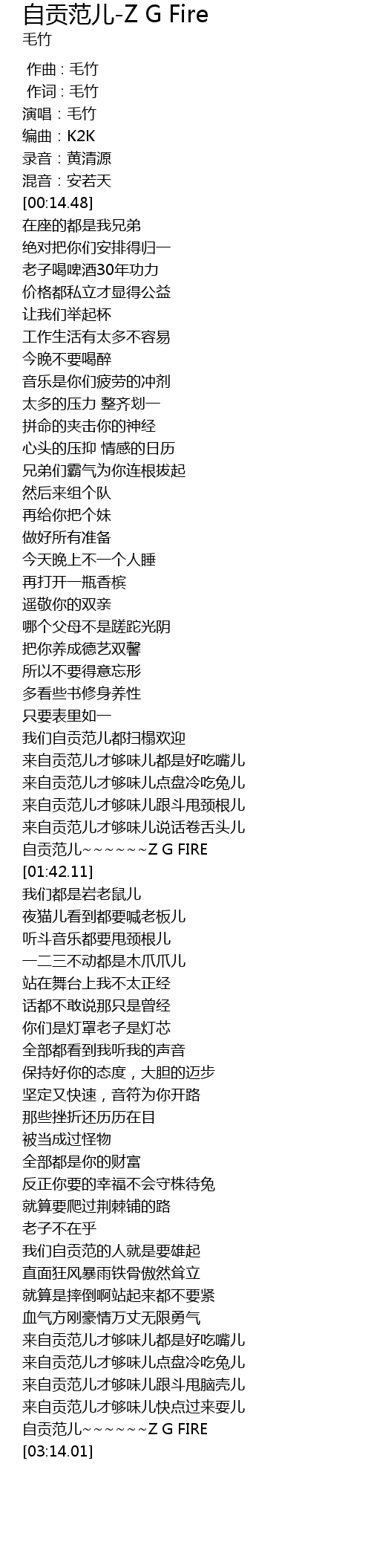 | [02:46.11] | zi gong fan er Z G FIRE |