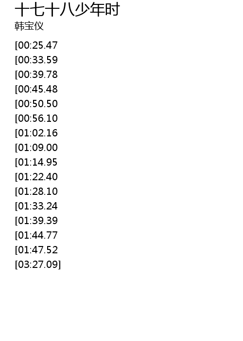 | [02:53.89][01:14.95] | 不要笑我十七十八是个小女孩 |