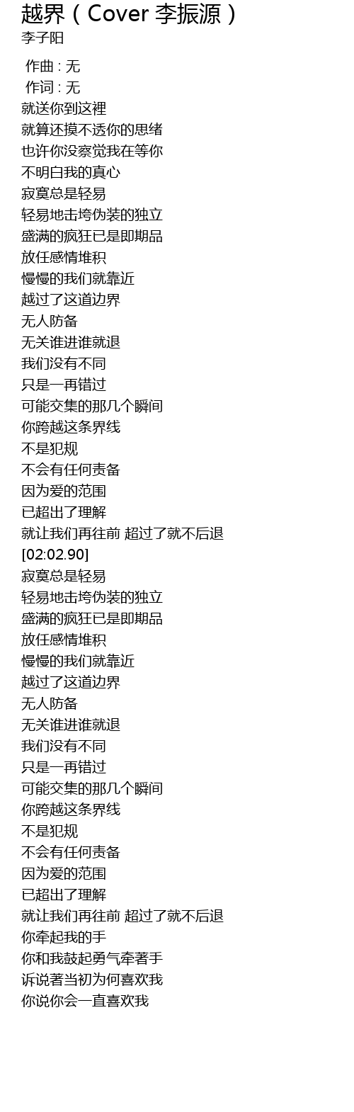 | [01:36.26] | nǐ kuà yuè zhè tiáo jiè xiàn |