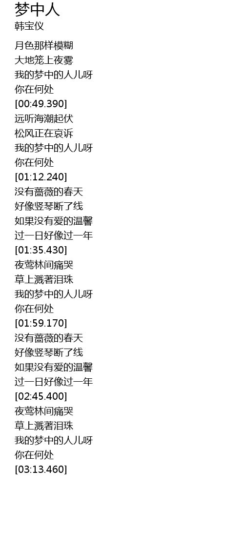 | [01:47.220] | wǒ de mèng zhōng de rén ér ya |