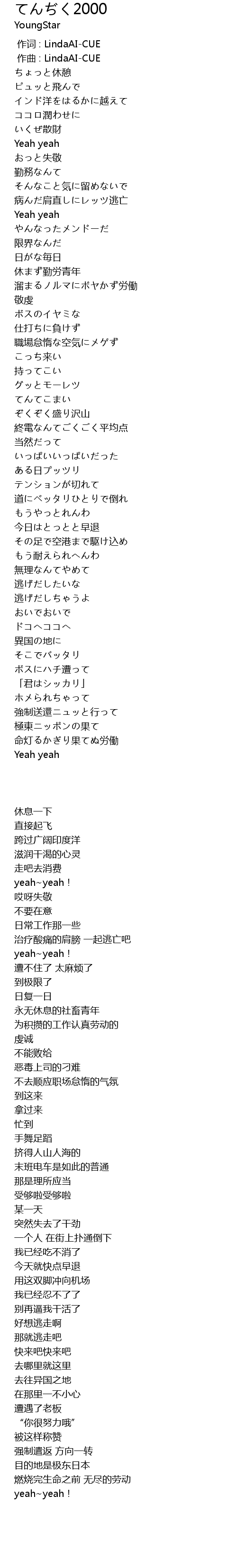 | [00:00.000] | 作词 : LindaAI-CUE |