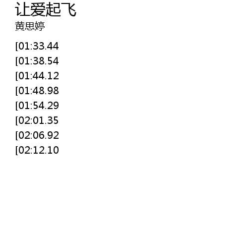 | [03:24.76][02:01.35][00:51.28] | 随风飘散祝福满人间 |