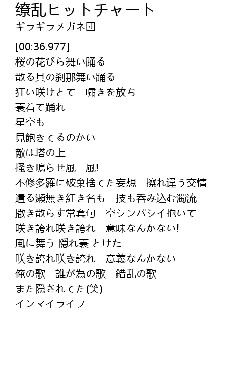 | [01:47.455] | 俺の歌 誰が為の歌 錯乱の歌 |