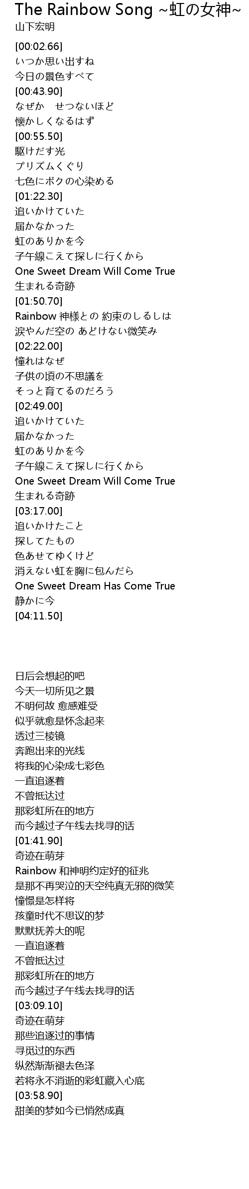 | [01:59.90] | Rainbow shén yàng yuē shù |