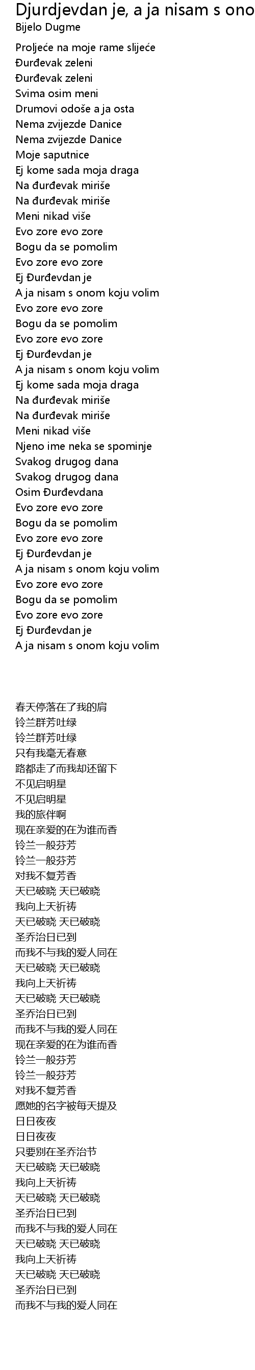 | Song | Djurdjevdan je, a ja nisam s onom koju volim |