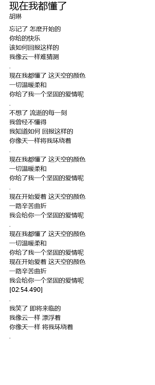 | [02:21.260] | 现在我都懂了 这天空的颜色 |
