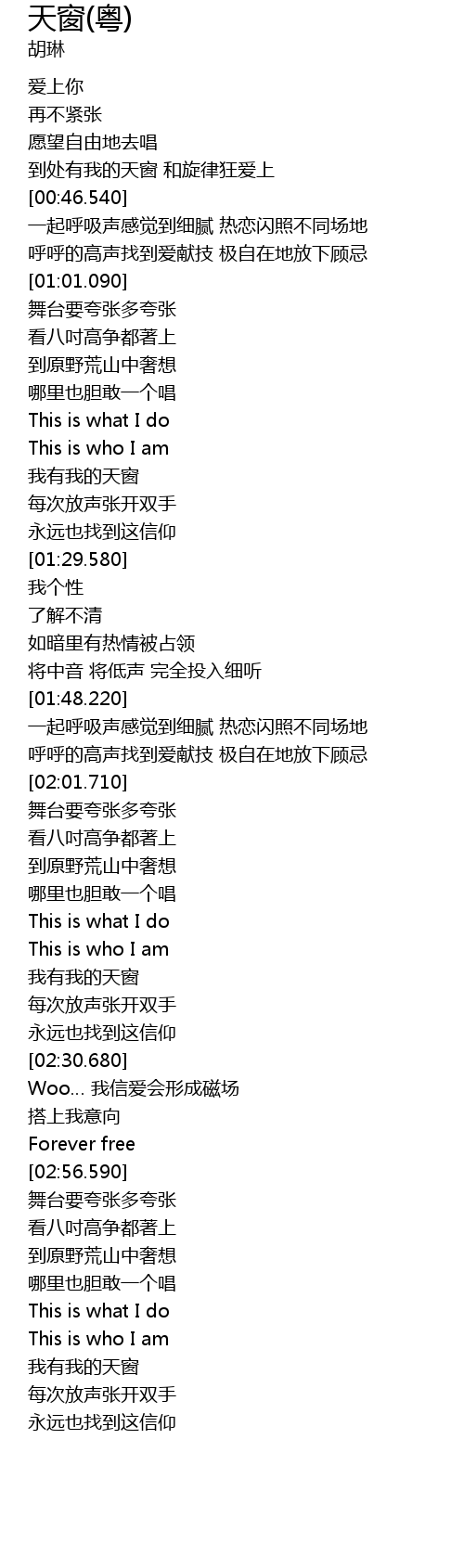 | [00:41.340] | 到处有我的天窗 和旋律狂爱上 |
