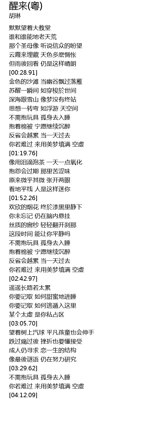 | [02:15.96] | 不需抱玩具 孤身去入睡 |