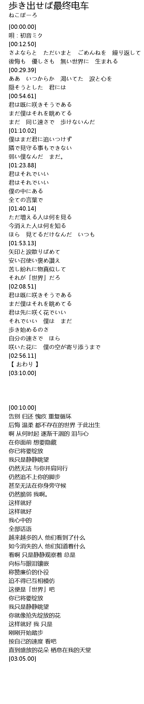 | [00:15.61] | さよならと ただいまと ごめんねを 繰り返して |