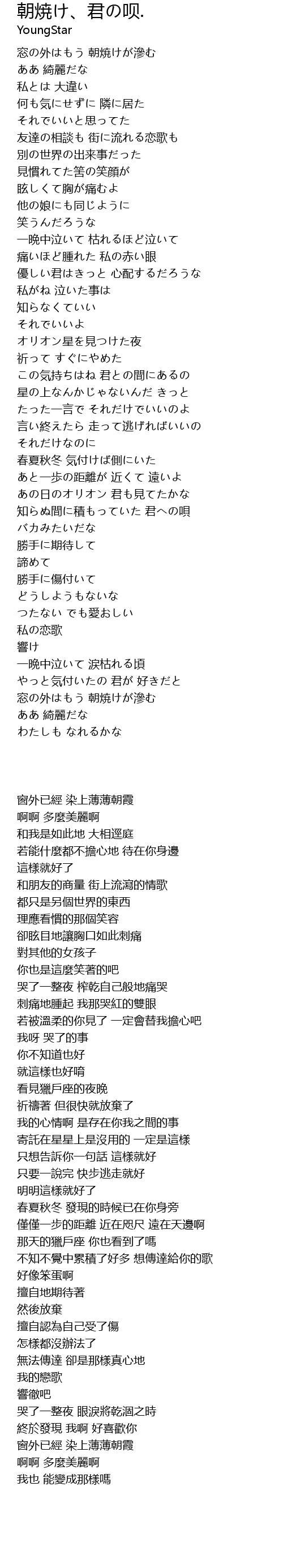 | [00:00.00] | 窓の外はもう 朝焼けが滲む |