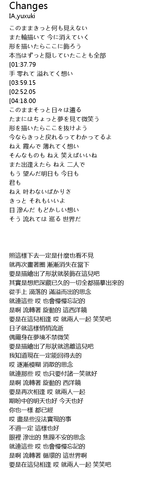| [01:17.95][02:52.05] | そう 流れては 廻る ジオラマ |