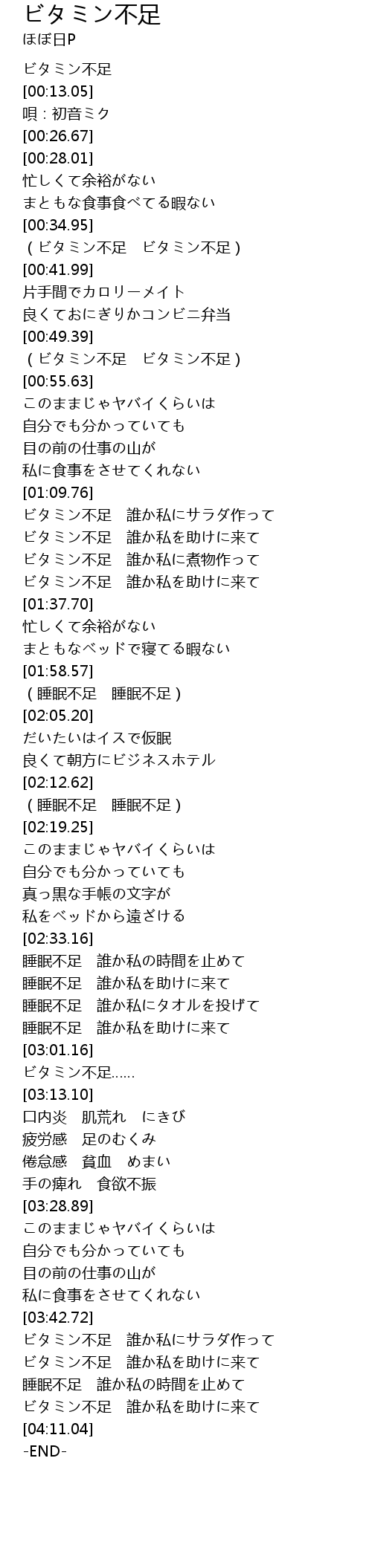| [03:50.11] | ビタミン不足 誰か私を助けに来て |