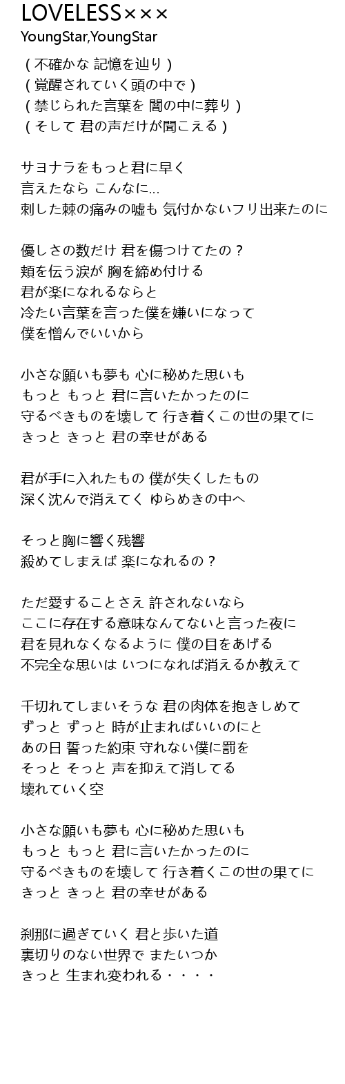 | 守るべきものを壊して 行き着くこの世の果てに | |