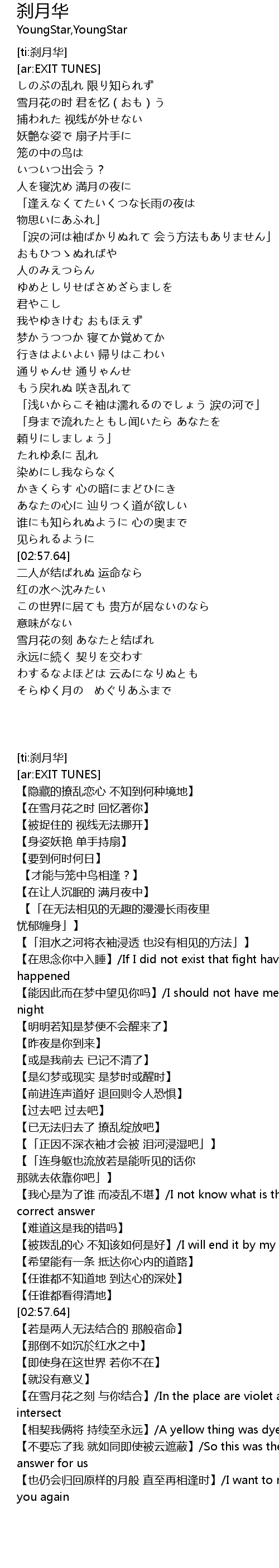 | [00:52.75] | 雪月花の时 君を忆(おも)う |