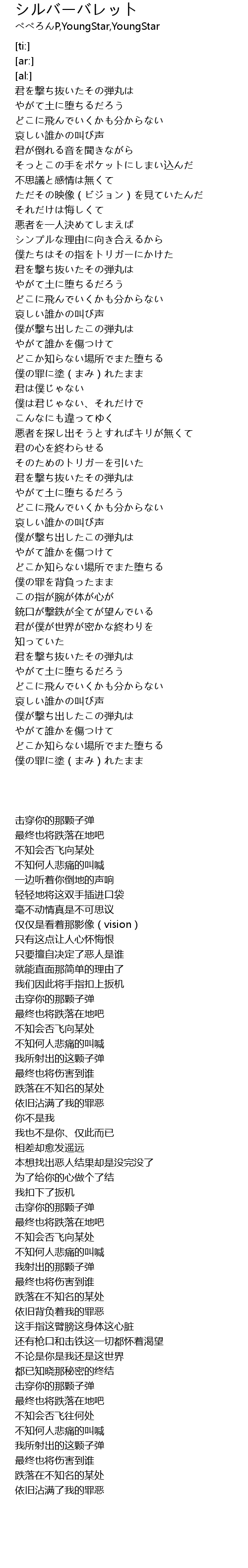 | [02:29.63] | 君を撃ち抜いたその弾丸は |