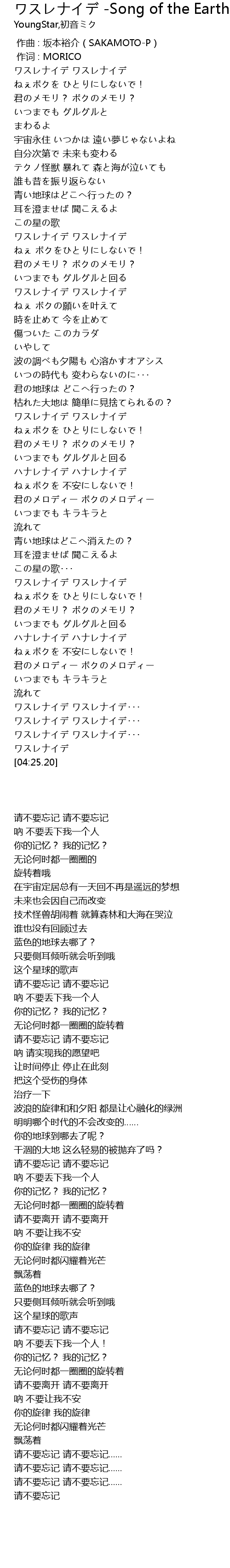 | [04:02.51] | ワスレナイデ ワスレナイデ・・・ |