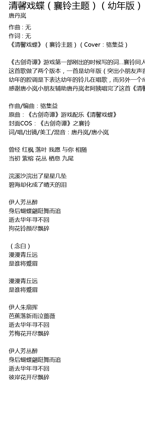 | 《古剑奇谭》游戏第一部刚出的时候写的词…襄铃同人歌…老词,老词…… | |