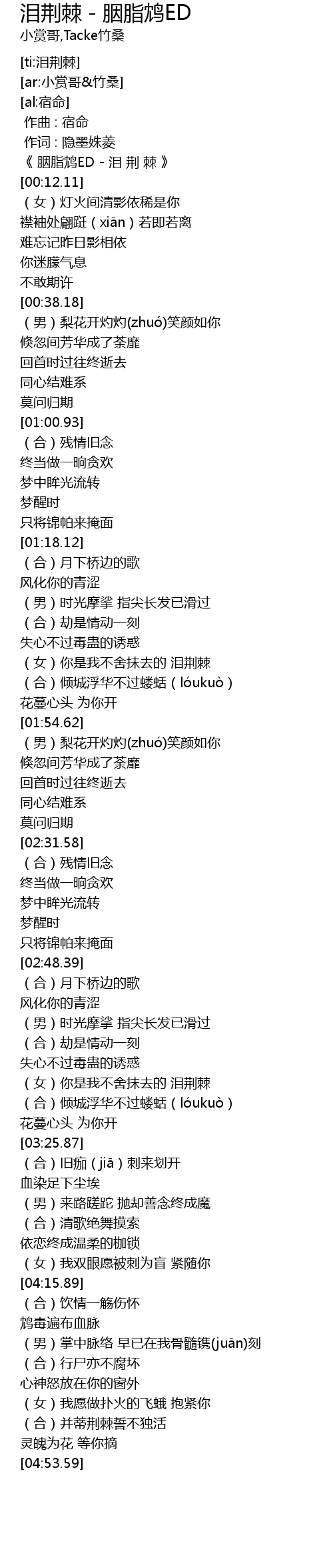 | [00:02.72] | 《 胭脂鸩ED - 泪 荆 棘 》 |