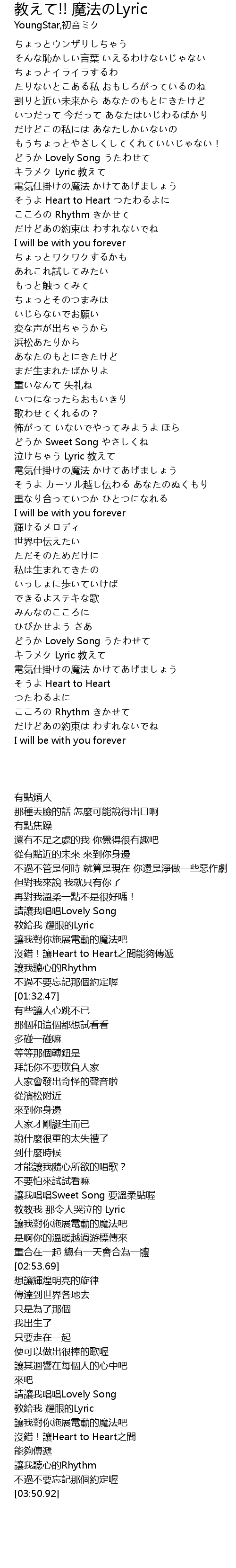 | [02:32.92] | どうか Sweet Song やさしくね |