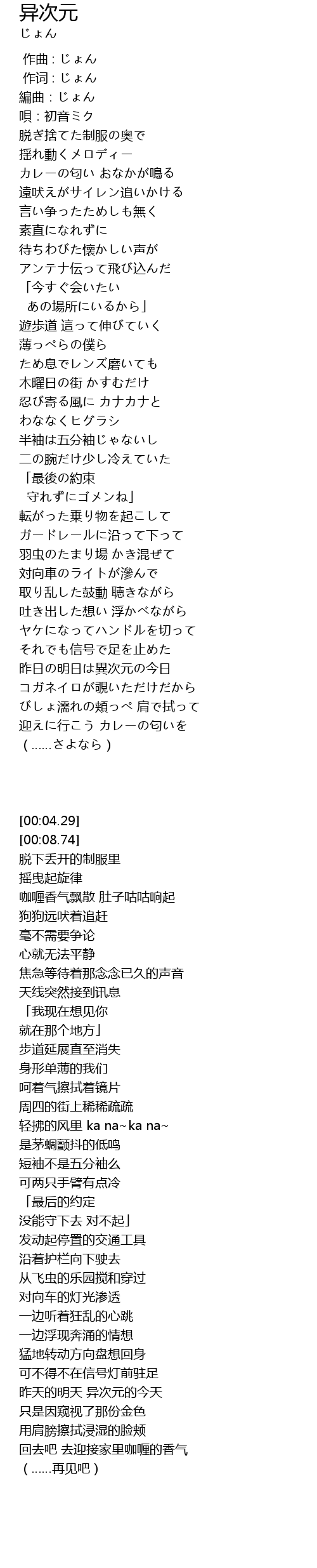 | [00:04.29] | 編曲:じょん |