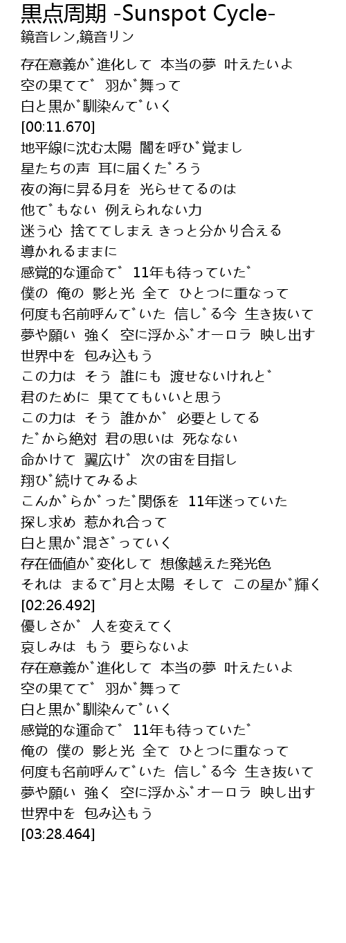 | [00:30.228] | 地平線に沈む太陽 闇を呼び覚まし |