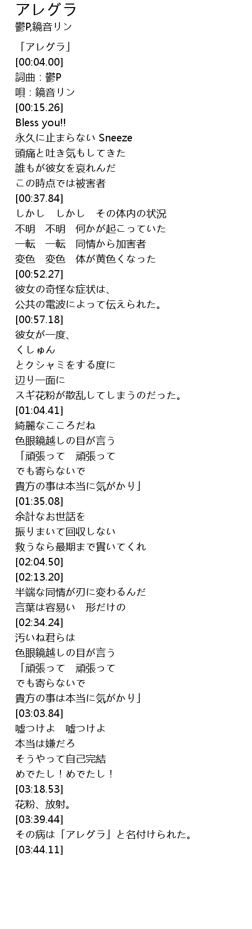 | [03:41.08] | その病は「アレグラ」と名付けられた。 |