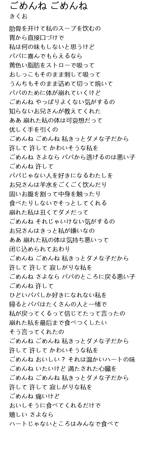 | [01:57.43] | ごめんね さよなら パパから逃げるのは悪い子 |