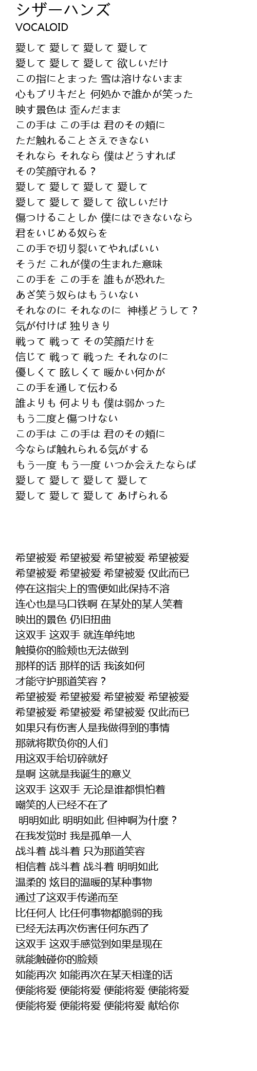 愛して 愛して 愛して 欲しいだけ |