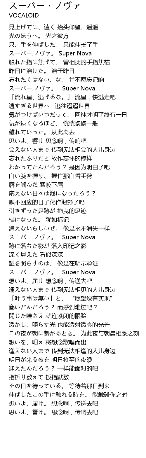 | [00:37.74] | スーパー.ノヴァ。 Super Nova |