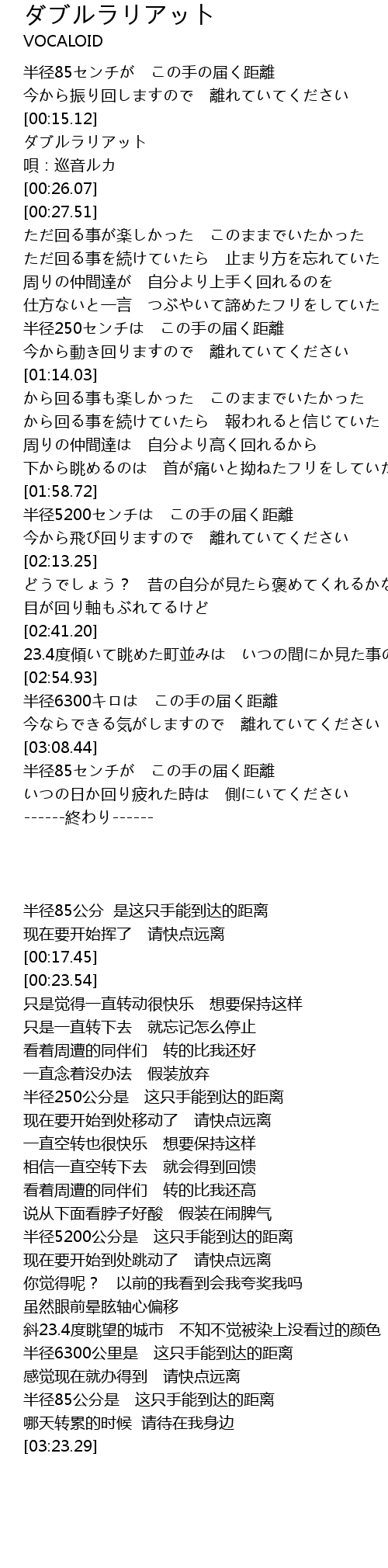 | [01:59.43] | 半径5200センチは この手の届く距離 |