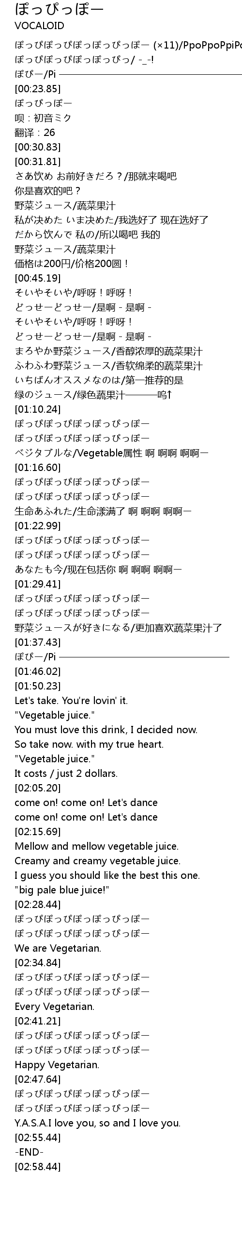 | [02:35.64] | ぽっぴぽっぴぽっぽっぴっぽー |