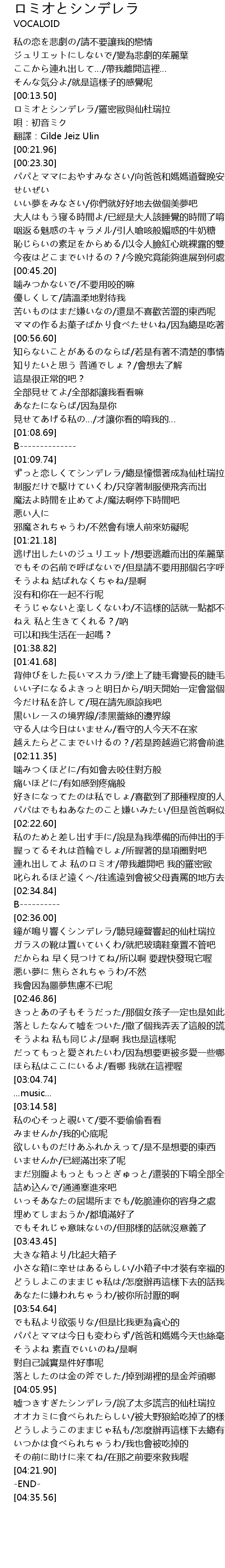 | [00:14.36] | ロミオとシンデレラ/羅密歐與仙杜瑞拉 |