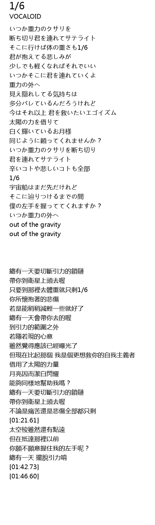 | [01:37.72] | いつか重力の外へ |