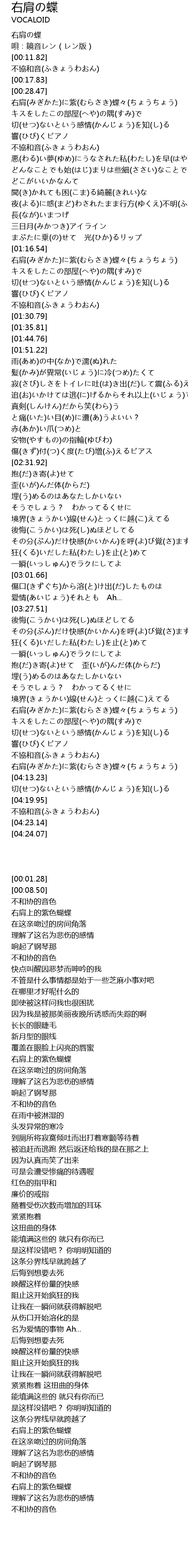 | [00:01.28] | 右肩の蝶 |