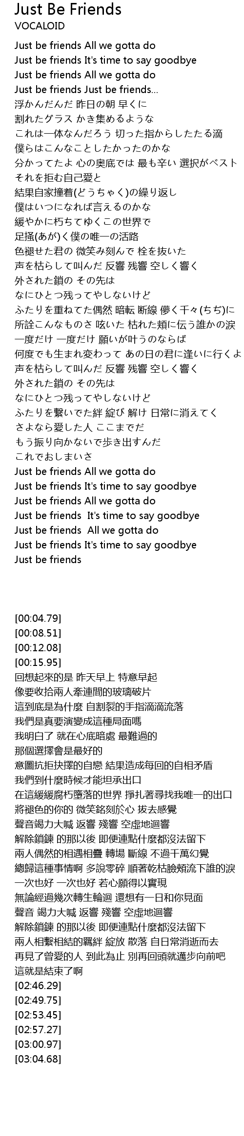 | [03:04.68] | Just be friends It' s time to say goodbye |
