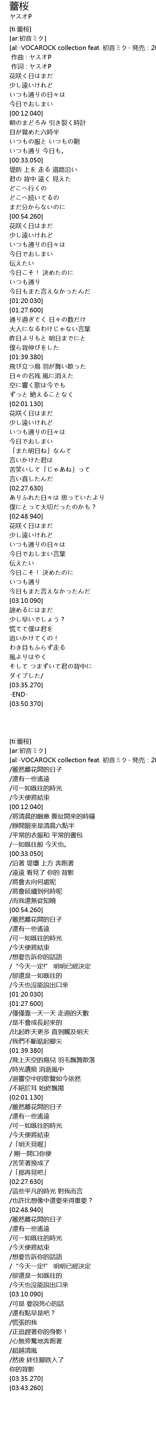 | [al:-VOCAROCK collection feat. 初音ミク- 発売:2010年7月21日] | |