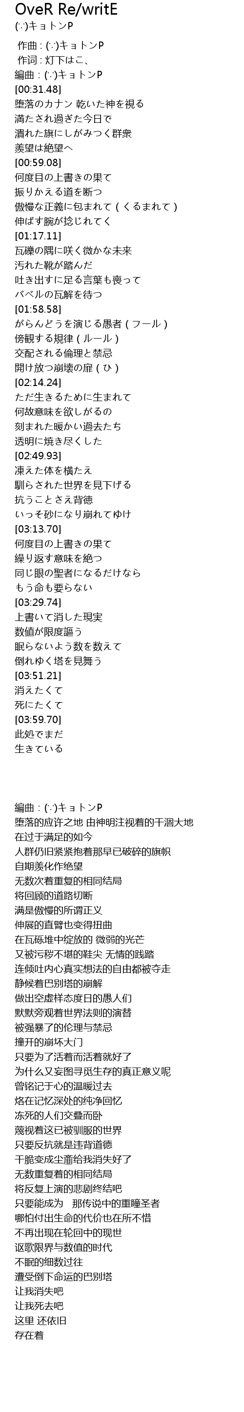 | [00:00.00] | 作曲 : (∵)キョトンP |