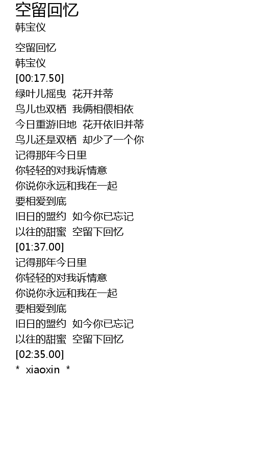 | [02:25.30] | yi wang de tian mi kong liu xia hui yi |