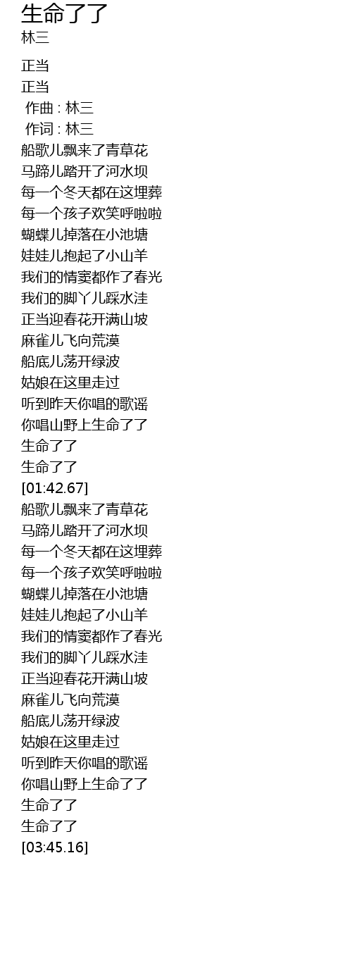 | [03:29.50] | shēng mìng liǎo liǎo |