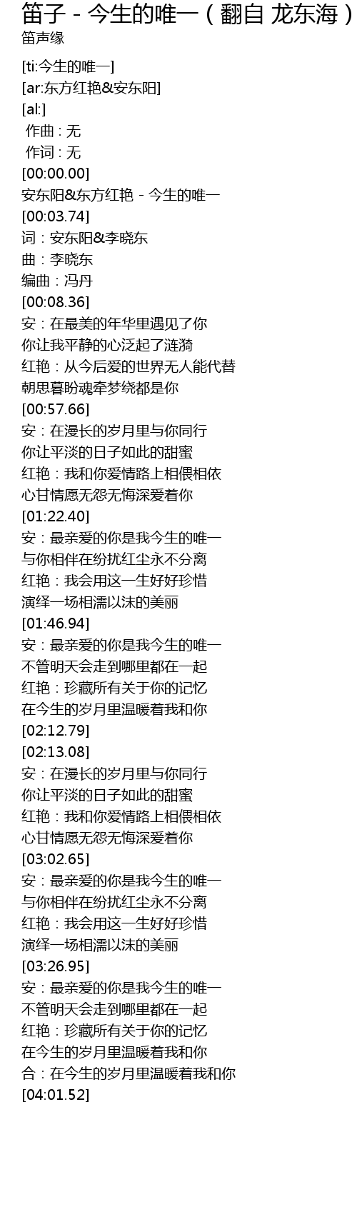 | Song | 笛子 - 今生的唯一(翻自 龙东海) |