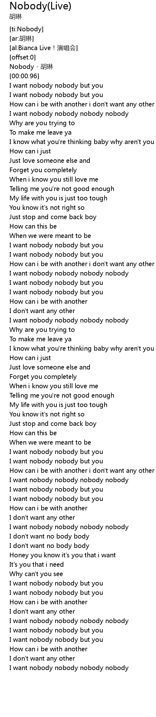 | [02:03.44] | I want nobody nobody nobody nobody |
