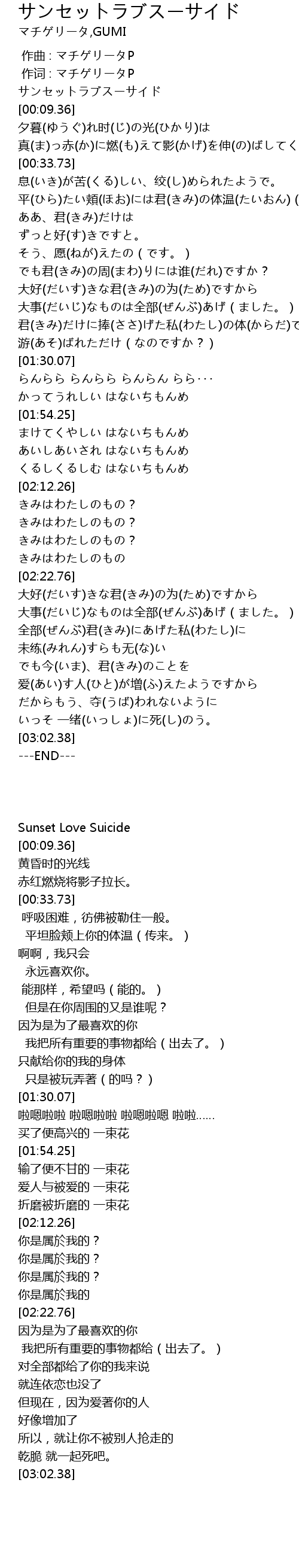 | [00:00.00] | 作曲 : マチゲリータP |