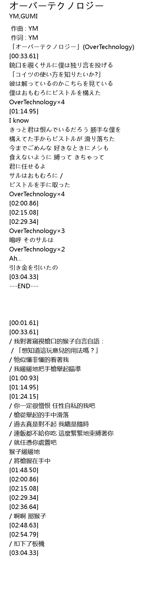 | [00:01.61] | 「オーバーテクノロジー」(OverTechnology) |