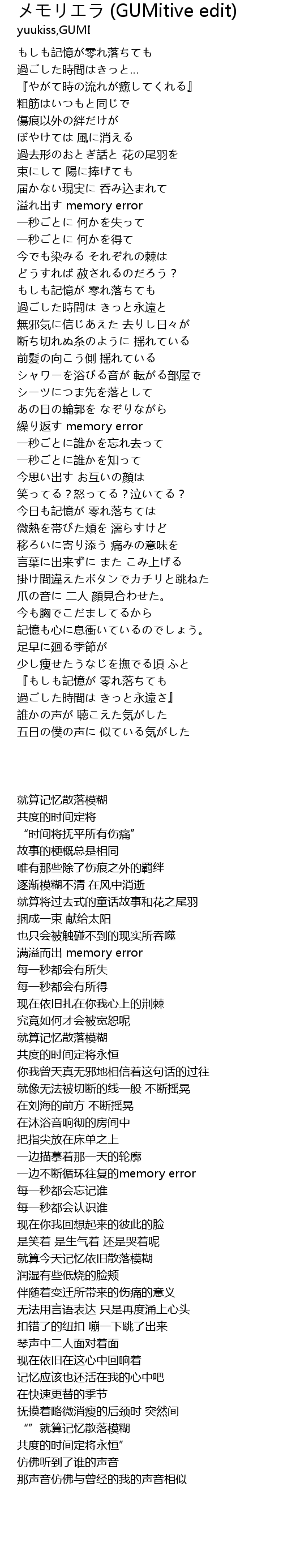 | [4:01.762] | 『もしも記憶が 零れ落ちても |